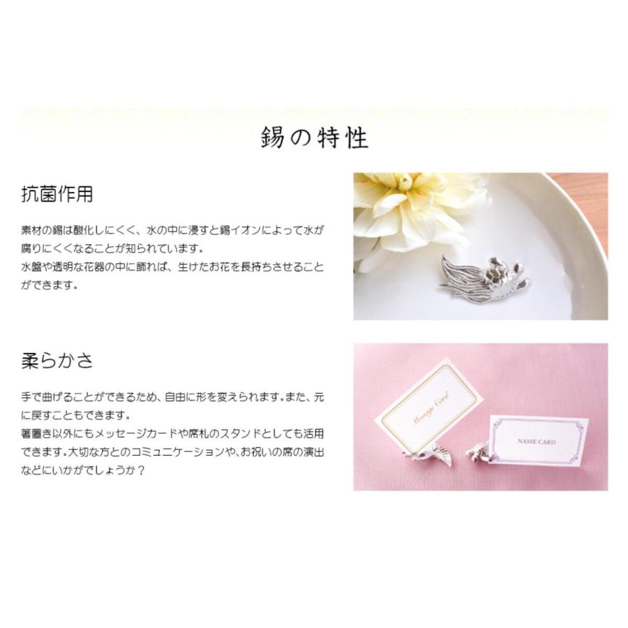 純錫製の箸置きです。錫には抗菌作用があります。純錫は柔らかく手で曲げることができるので、お好みにアレンジして箸置き以外にもご利用いただけます。