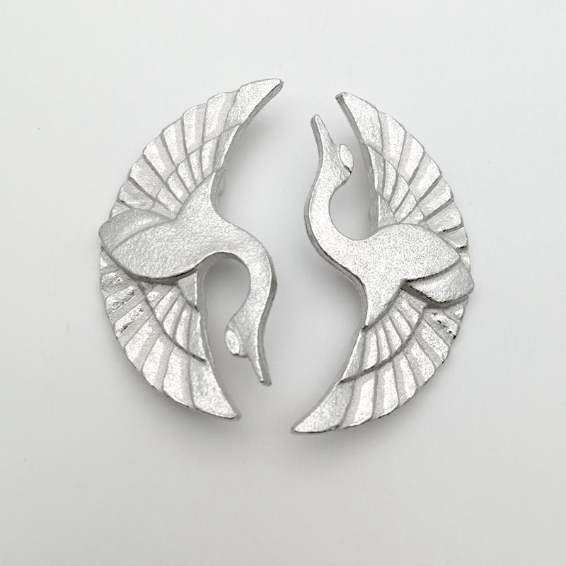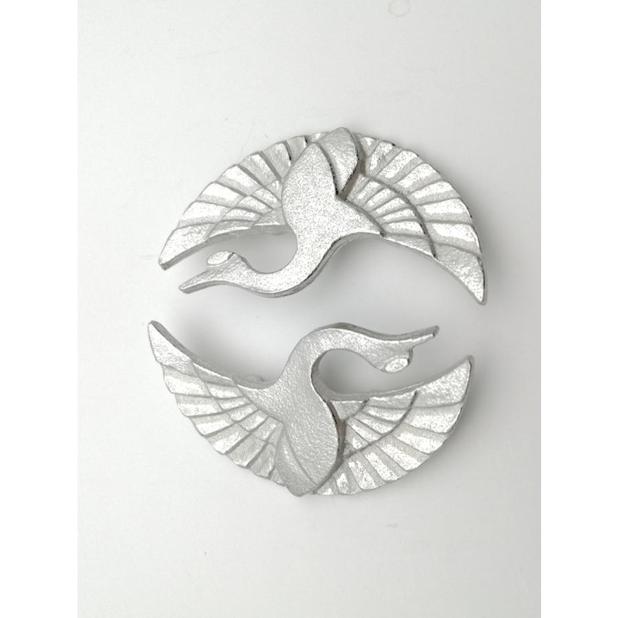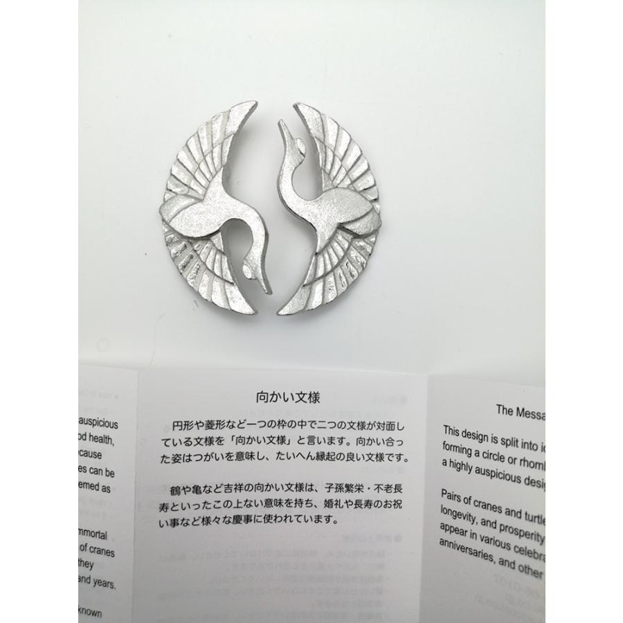 向かい合った姿はつがいを意味し、縁起のいい文様です。鶴や亀など吉祥の向かい文様は子孫繁栄不老長寿といったこの上ない意味を持ち、婚礼やお祝い事の慶事に使われています。
