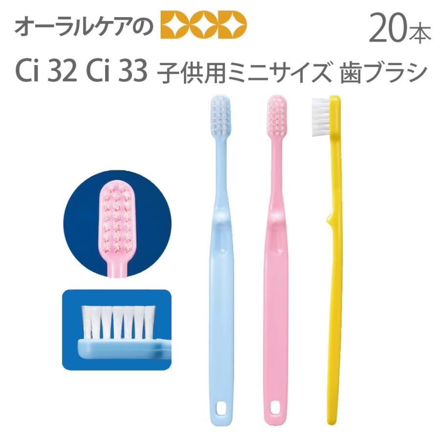 お子様も持ちやすいくぼみ付き子供歯ブラシ衛生的な個包装、安心の日本製品名Ci32 Ci33 子供用ミニサイズ 歯ブラシサイズ全長:153mm、ヘッド:9×20mmかたさ32 M(ふつう)、33 S(やわらかめ)カラーブルー・ピンク・イエロー(3色アソート)対象幼児〜小学生製造日本製
