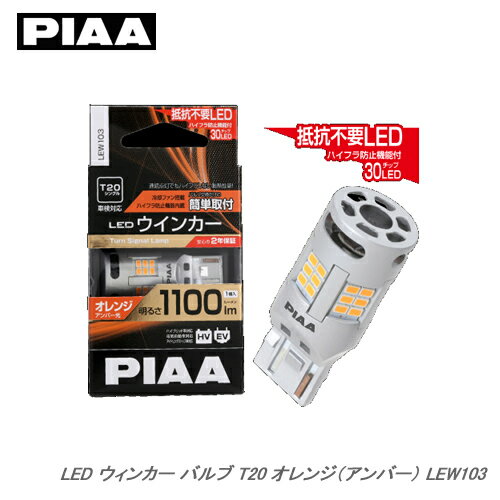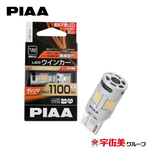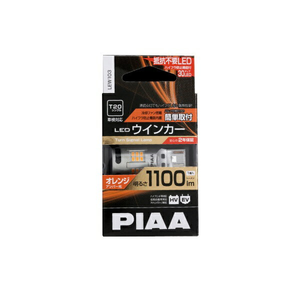 【在庫有】PIAA ウインカー用 LED アンバー 冷却ファン搭載/ハイフラ防止機能内蔵 1100lm 12V T20 2年保証 車検対応 1個入 LEW103 ピア
