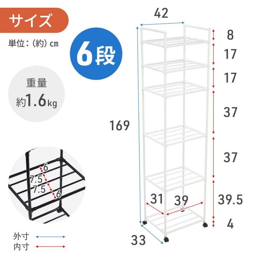 4段は約1.2kg、6段は約1.6kgと軽量!女性や高齢の方でも簡単に移動OK