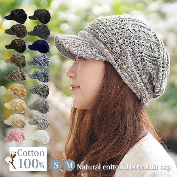 商品名【ナチュラルコットン100%つば付き透かし編みニット帽】
