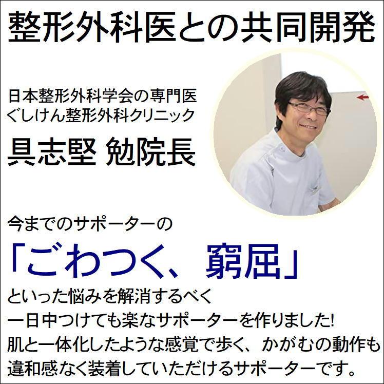 「ごわつく、窮屈」といった不満の声をもとに歩行、かがむの動作も違和感なく装着していただけるサポーターが誕生しました。