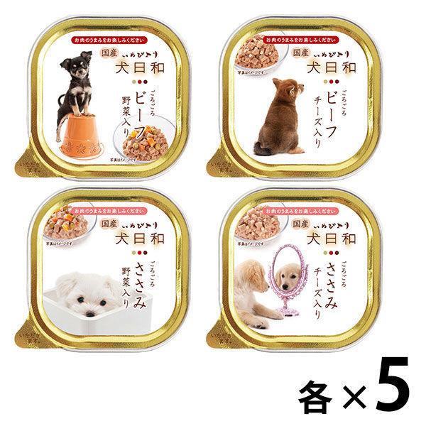 (お得なアソート)犬日和 ささみ・ビーフ 20個(4種×各5個)ドッグフード ウェット トレイ
