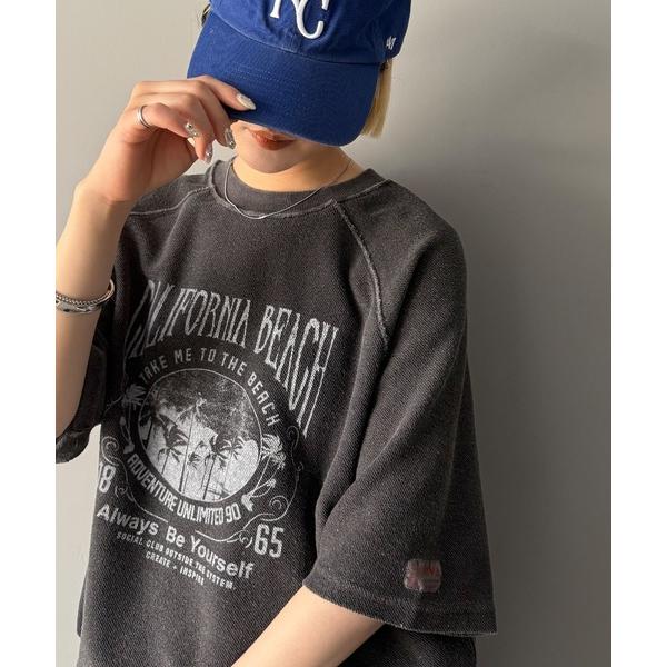 商品名:《JaVaジャバコラボ》こなれ感叶う大人のゆるスタイル。裏使いヴィンテージライクピグメントプリント半袖スウェット(トップス)