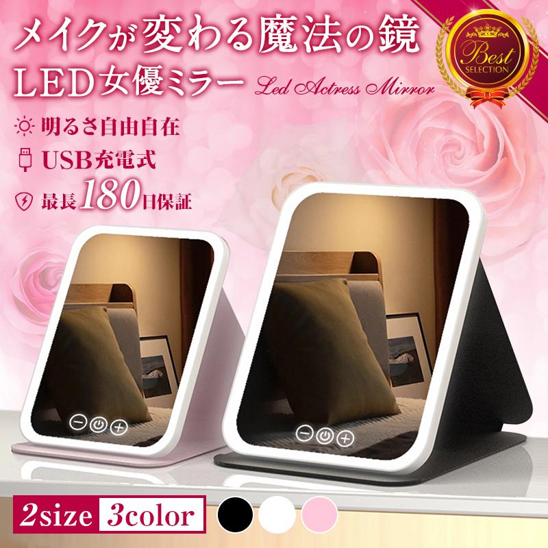 女優ミラー 卓上 卓上ミラー スタンドミラー led 鏡 手鏡 メイクミラー 折りたたみ ライト付き usb充電式 おしゃれ Mサイズ