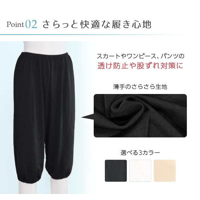 特徴:さらっと快適な履き心地の 裾ゴム付きペチパンツです。