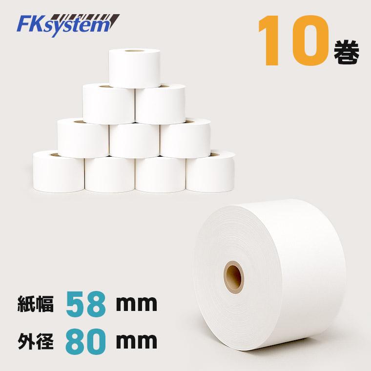 感熱レシートロール紙 58mm×80mm 高保存タイプ 10巻 送料無料 レジロール 感熱紙 サーマルプリンター対応 汎用 POSレジ用 まとめ買い FK588080-10 エフケイシステム 【輸入紙・海外加工】
