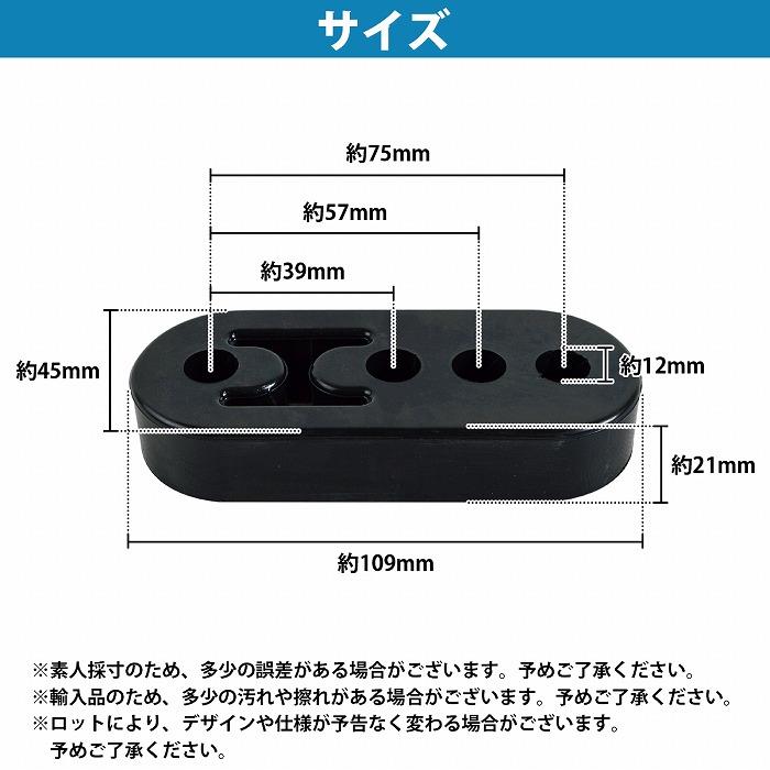 3段調整式の汎用の強化マフラーハンガーです。マフラーの交換時に必需品、マフラー下がり、干渉、脱落を防止します。純正に比べ、強度をアップした強化ゴムを使用しております。三段調整可能ですので、お好みの高さに変えることが可能です。マフラー位置にこだわる方は必需品のアイテムとなります。◆セット内容三段調整式 マフラーハンガー 2個◆サイズ(約)穴径 1.2cm幅 10.9cm×奥行4.5cm×厚み 2.1cm◆カラーブラック
