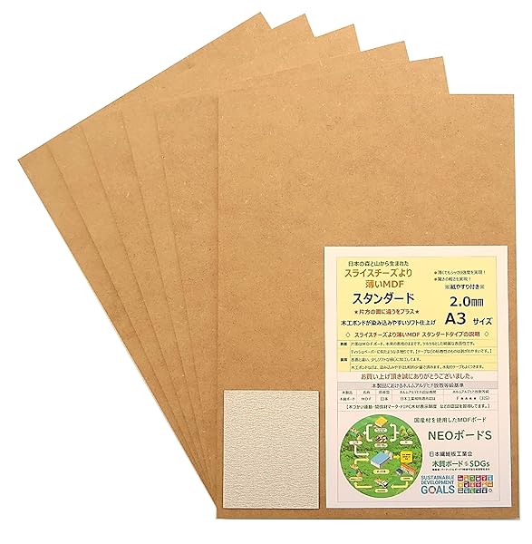 粘土板 カッターマット A3 2ミリ MDF 薄い板 綺麗な板 (A3サイズ 2? 10枚) 紙やすり付