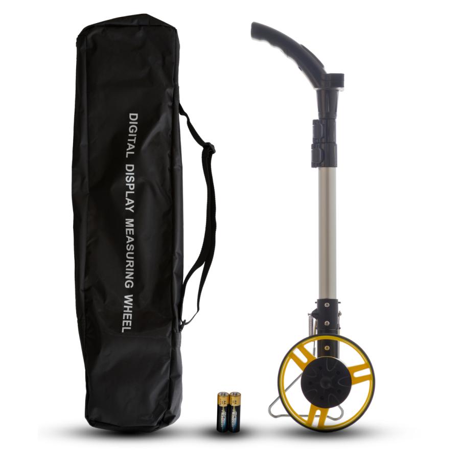小さな車輪での測定はより測定疲労を抑えることができます。手元に液晶があり、いちいちしゃがまなくても距離の確認ができます。バックライト付きで暗い環境下での測定に大変便利です。しかも、2段伸縮式でコンパクトに専用背負いケースに収納できて、携帯にも便利です。