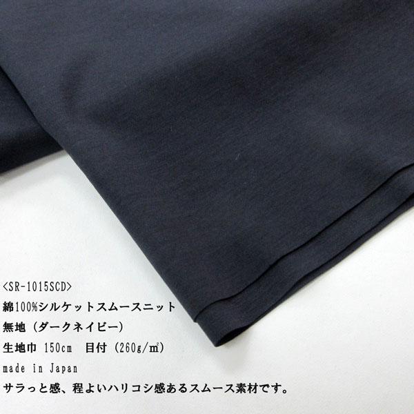 綿100% シルケットスムースニット(SR-1015SCD) 無地(ダークネイビー) 生地巾150cm 数量1(50cm)195円 日本製