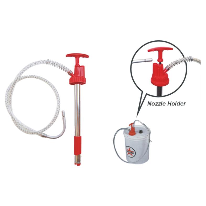 手動式オイルポンプ20L全長:450mmホースサイズ:L1250×φ15mmノズル径:φ8.3mmノズル角度:アール(半円状)ペール缶 オイル缶 対応 ペールポンプ オイル交換ギアオイル用アールノズル