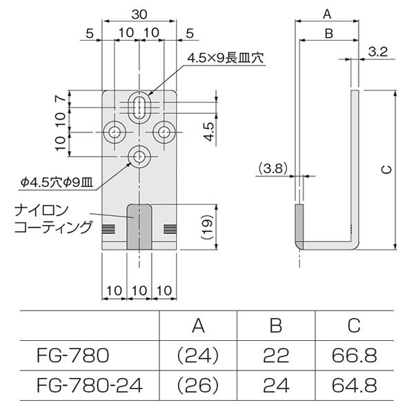 扉の厚みと戸と戸の隙間寸法によって、FG-780かFG-780-24をお選びください。