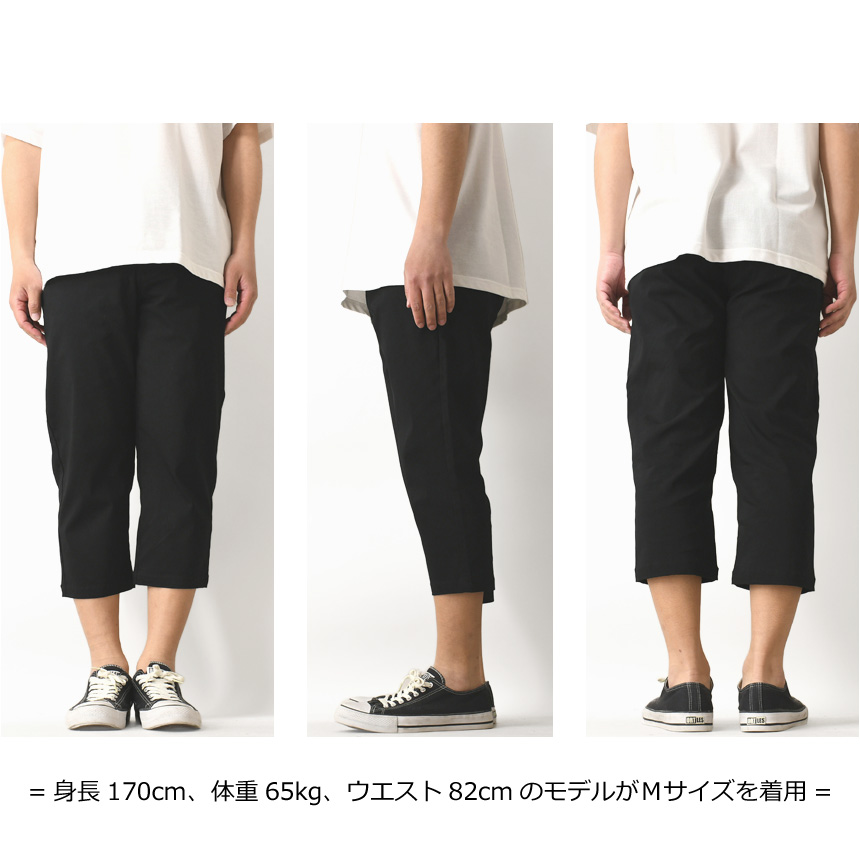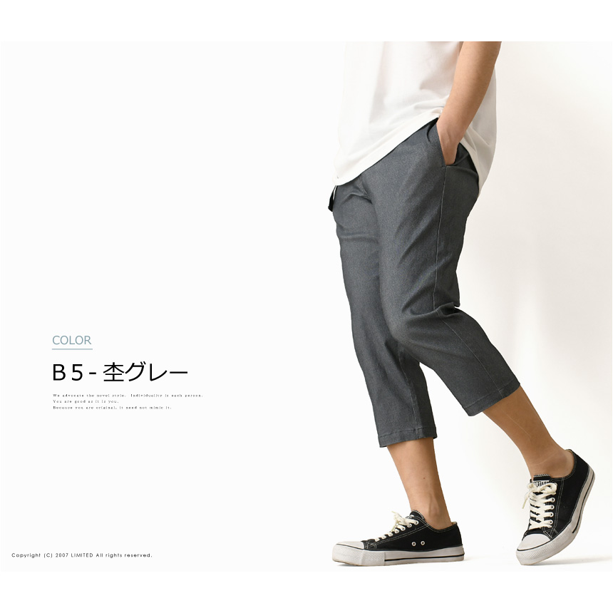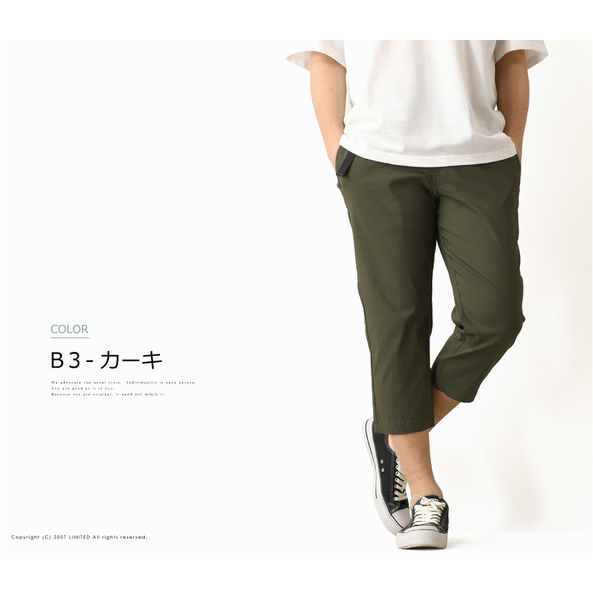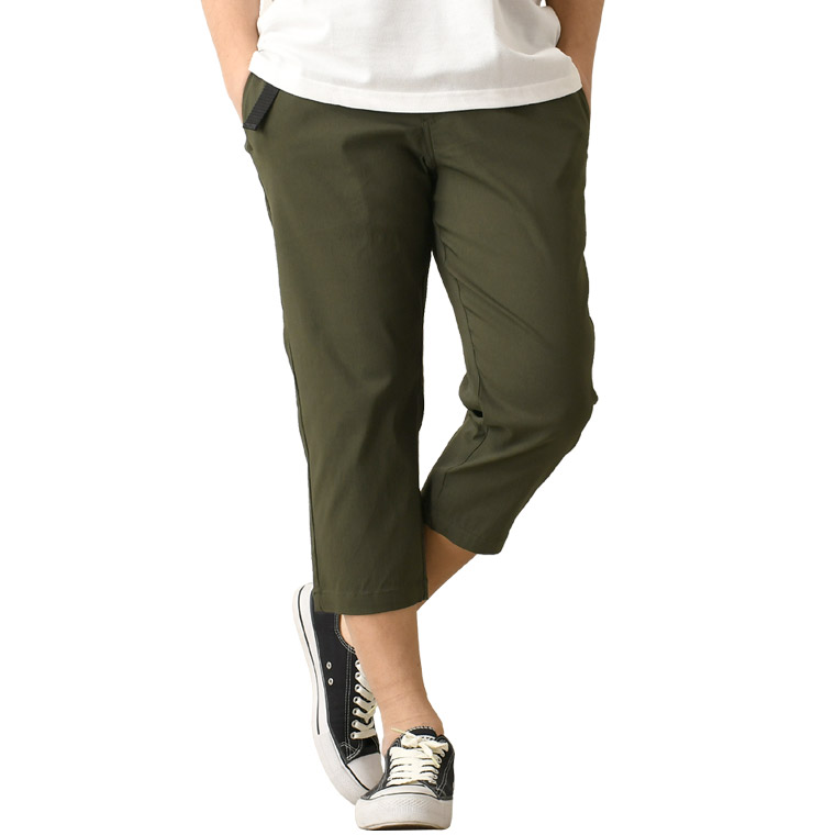足元をスッキリと見せる7分丈のクロップドパンツ。
