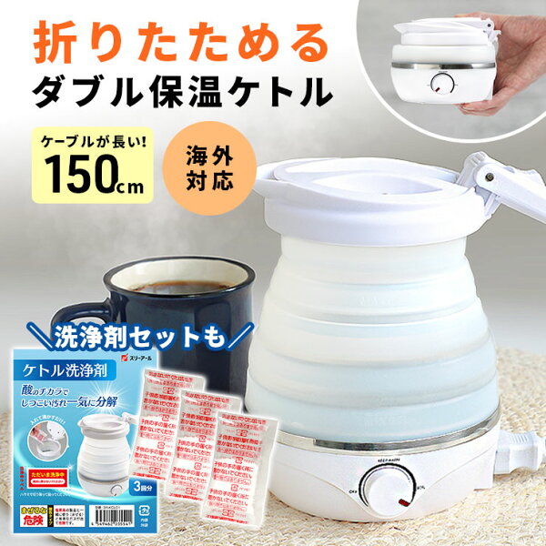 【海外で使えるケトル!】 折りたたみケトル 海外 対応 持ち運び 電気ケトル 持ち運びケトル キャンプ アウトドア シリコン ケトル トラベルケトル 電気 折りたたみ 防災 車中泊 旅行 便利グッズ 温度調節 保温 一人暮らし 600ml 小型 出張 海外旅行 ホテル スリーアール