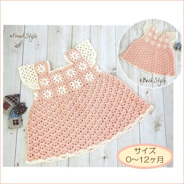 お花モチーフがキュートな袖つきのベビーワンピはふんわりとした淡い色の糸で編んで。