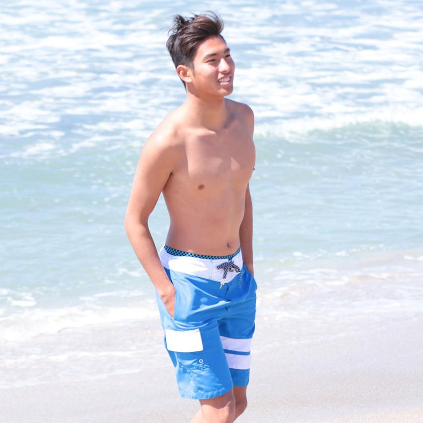 身長:183センチ / 体重:70キロ / ウエスト:79センチ / ヒップ:93センチ / サーフパンツはすべてM着用