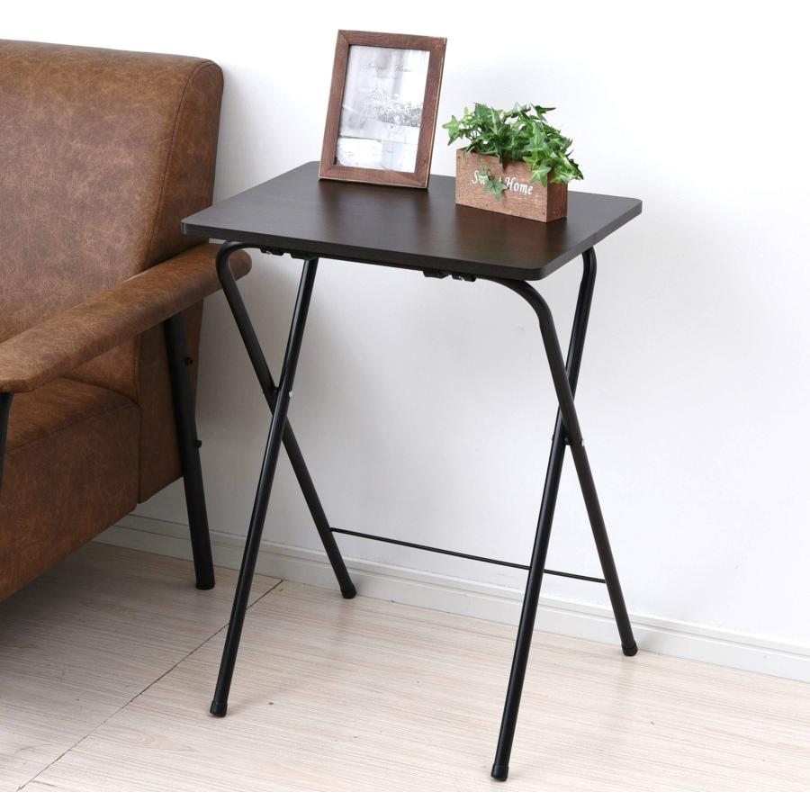[山善] テーブル ミニ 折りたたみ サイドテーブル 幅50×奥行48×高さ70cm ハイタイプ 傷・汚れ・水分・熱に強い天板(メラミン加工) なめらかな表面 角が丸い ダークブラウン/ブラック RYST5040H(DBR/BK4) 在宅勤務