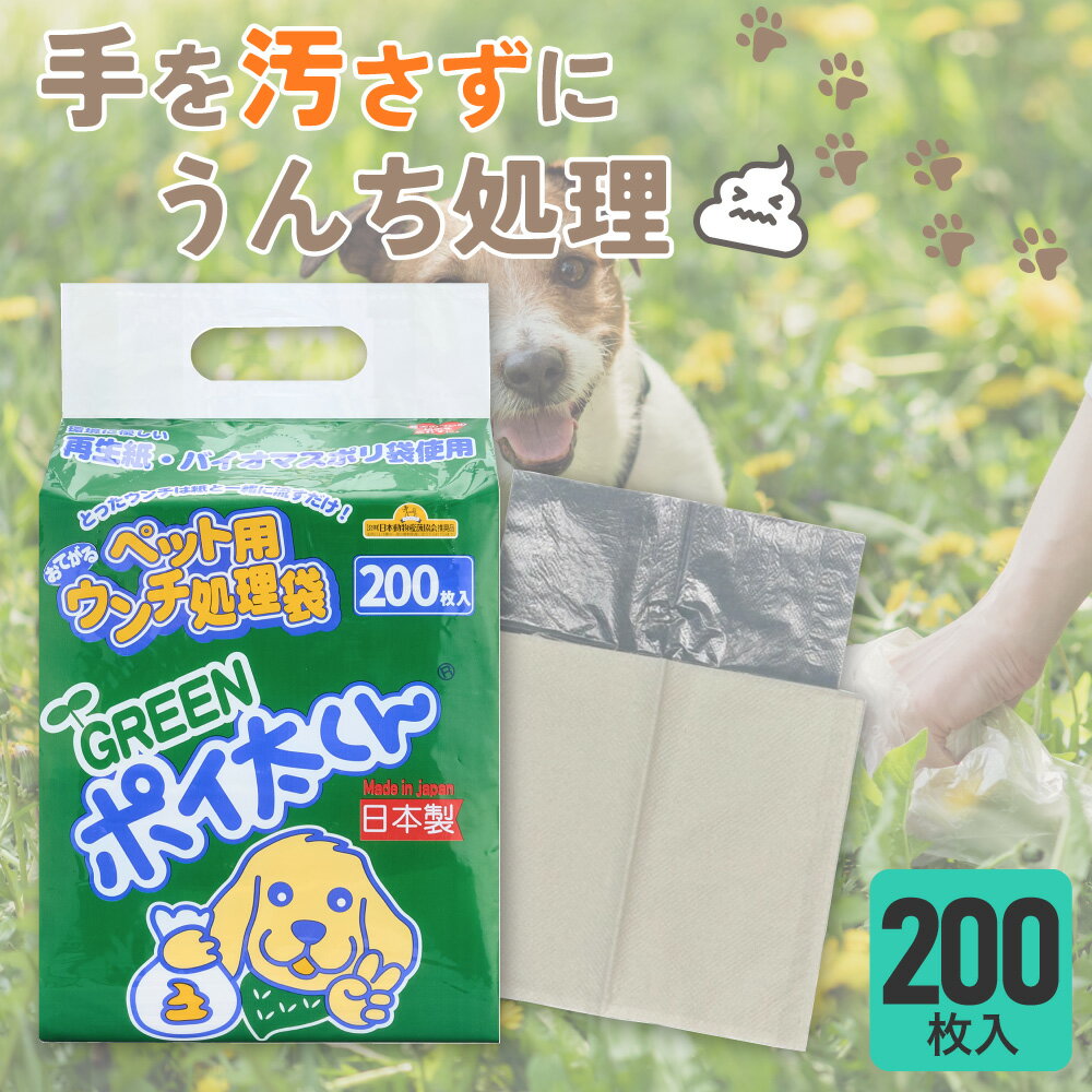 ペット用 うんち袋 GREEN ポイ太くん 200枚 トイレに流せる ウンチ袋 散歩袋 マナー袋 うんち処理袋 おさんぽ袋 流せる 大容量 犬用 犬 ぽいたくん