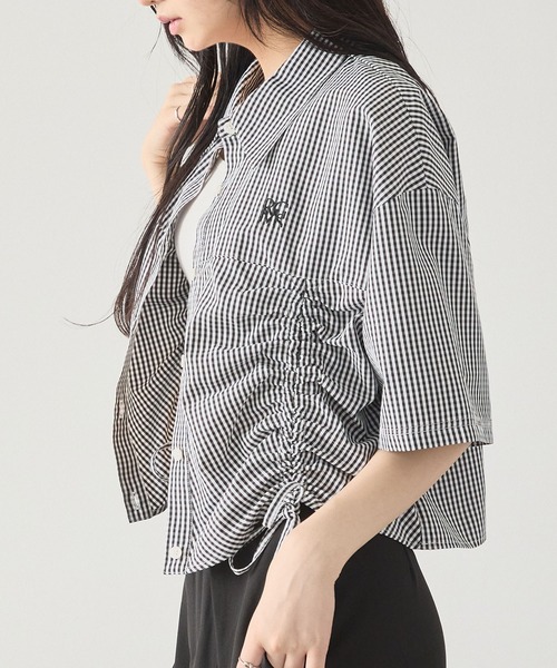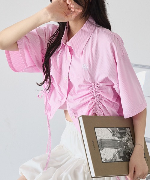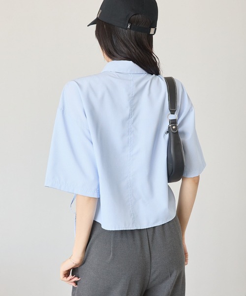 商品名:ワンポイント刺繍シャーリングストライプ半袖シャツ