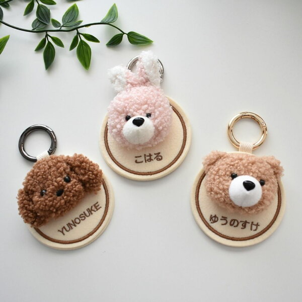 DECO DESEN オリジナル ネームタグ 丸型 ふわふわ マスコット付 クマ プードル リングタイプ オリジナル刺繍 世界に…