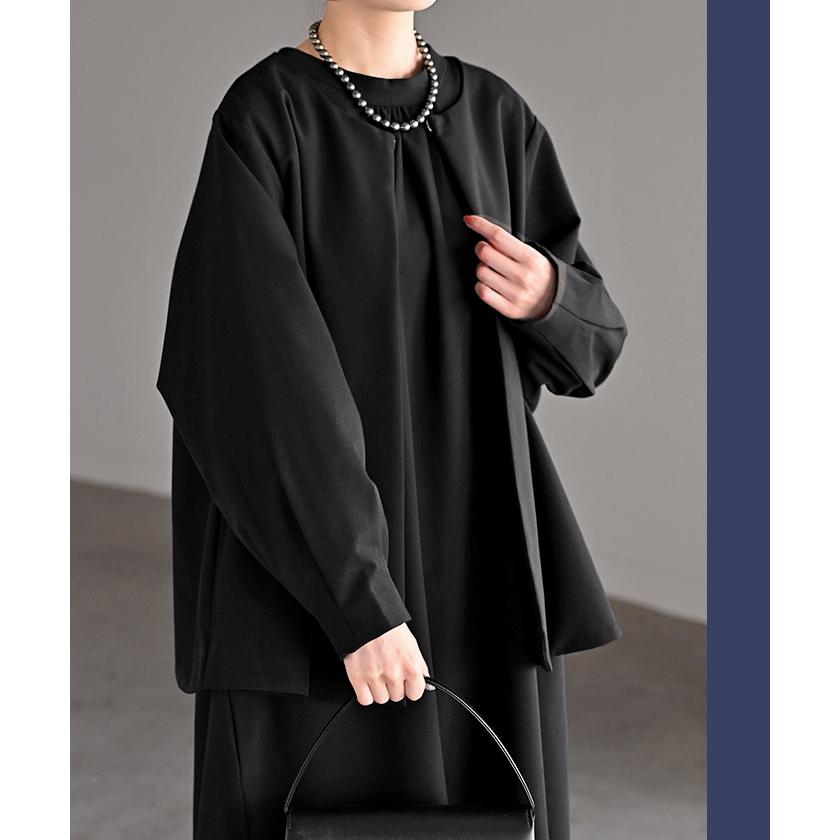 オケージョン フォーマル セミフォーマル オケージョンスーツ フォーマルスーツ セミフォーマルスーツ チュニック丈ジャケット 長袖 羽織 羽織り長い 長めドルマン ドルマンアウター お呼ばれファッション 女子会 衣装 モテ ミセス おすすめ 通勤 通学 ドレープ 落ち感 華奢 華奢感 3点セット 三点セット ブラック 黒 旬 トレンド プラスサイズ オーバーサイズ 大きい 大きめ フリーサイズ フリー S M L LL 2L XL 3L XXL LLL カジュアル ベーシック オフィス オフィスカジュアル 着回し シンプル 大人 大人カジュアル オトナ 女性 綺麗 きれい キレイめ きれいめ 高見え 上質 上品 20代 30代 40代 50代 60代 おしゃれ お洒落 オシャレ 春 夏 秋 冬 春夏 秋冬 HUG.U HUGU ハグユー はぐゆー ノーカラー ボウタイ 入学式 卒業式 セレモニースーツ オケージョン レディーススーツ 大きいサイズ 冠婚葬祭