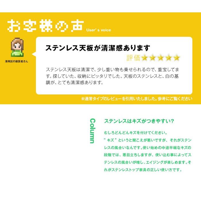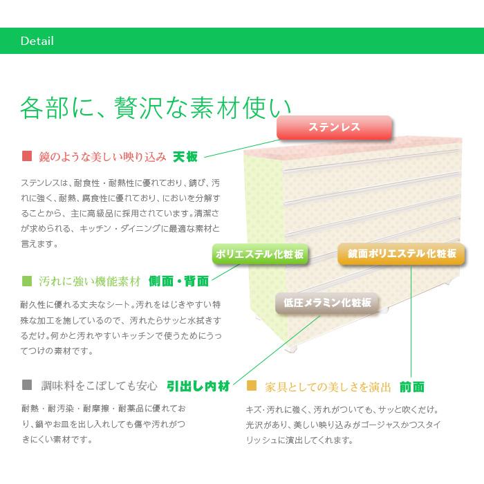 ●主な材質: 天板:ステンレス、前板:鏡面ポリエステル化粧板、側板ポリエステル化粧板