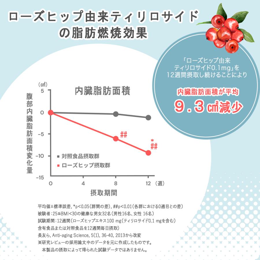 機能性関与成分:ローズヒップ由来ティリロサイド 0.1mg