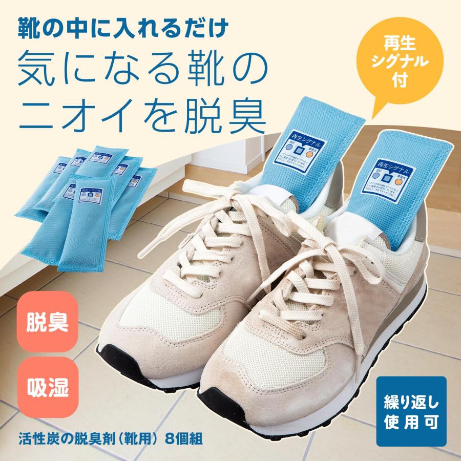 \靴の中の清潔を保つ/・活性炭+シリカゲルで靴を脱臭・除湿◎・においが気になる靴に入れるだけ!・天日干しで繰り返し使用可能!・天日干しのタイミングが分かる再生シグナル付きなので分かりやすい◎・特ににおいが気になる靴場合は、本製品を複数入れて脱臭してください!【サイズ】約縦19×横6cm【素材・材質】内容物:活性炭、B型シリカゲル側地:ポリプロピレン不織布【セット内容】8個組スニーカー/パンプス/ブーツ/クローゼット/におい消し/臭い/におい