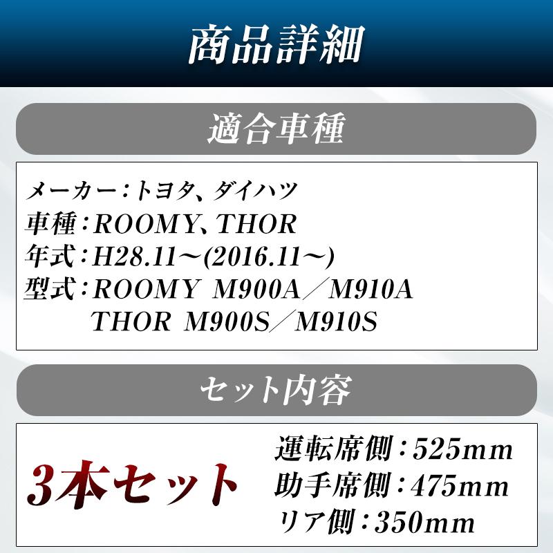 商品名: タンク ルーミー トール ジャスティ ワイパー 替えゴムTOYOTA TANK ROOMY M900A M910A 純正互換品 運転席 助手席 リア 3本セット カスタム