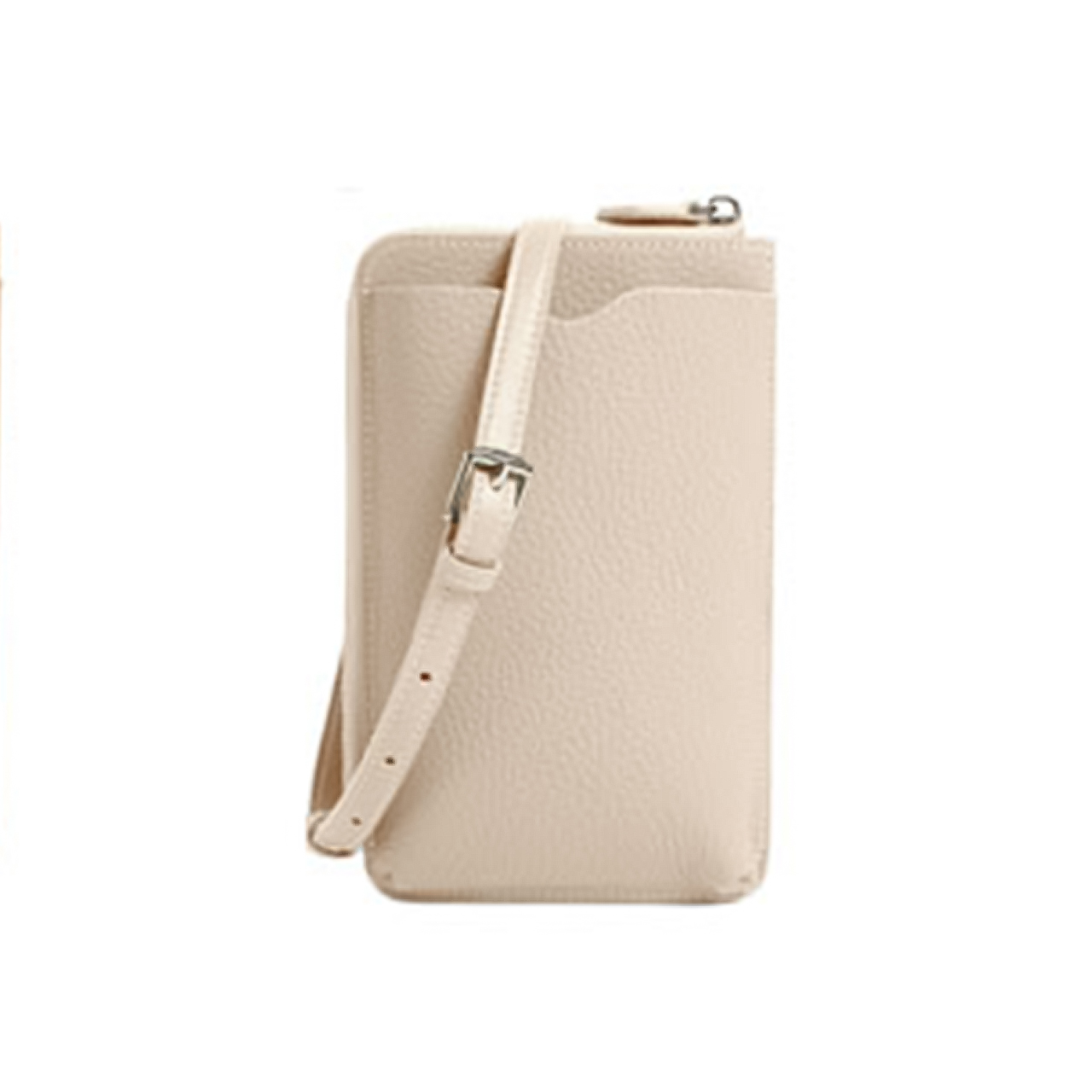 肌触りの良い牛革で多機能で大容量のシボ加工のスマホポーチ。