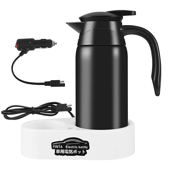 FINTA 12V/24V兼用 車用電気ポット 車用湯沸かし器 800ml大容量/食品級ステンレス鋼/沸き立った後に自動的に保温/小型車トラック兼用/仕事/旅行使用便利/お茶入れ/卵煮ること/コーヒー入れ/カップラーメン入れ/牛乳が温まる (ブラック