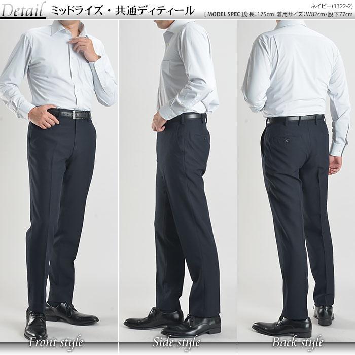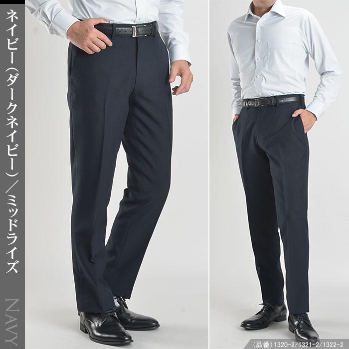 【キーワード】裾上げ不要 ビジネススタイル クールビズ 男性用 黒 灰色 紺 無地 イージーケア 家庭洗濯可能 ズボン