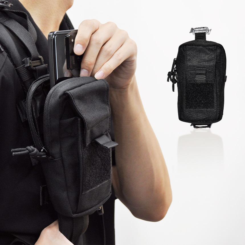 スマホや財布、カードケースなど収納するのに便利な収納ポケット付き。
