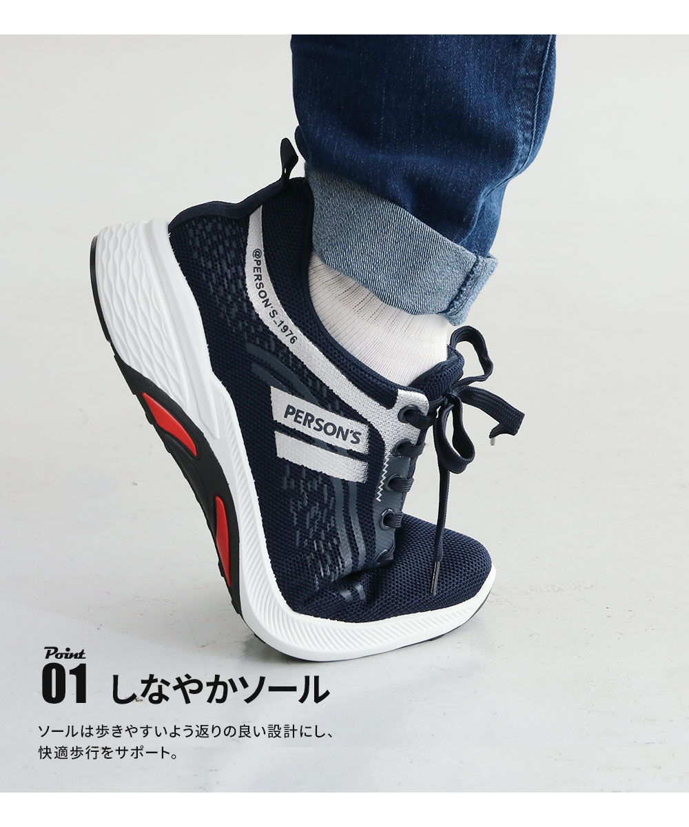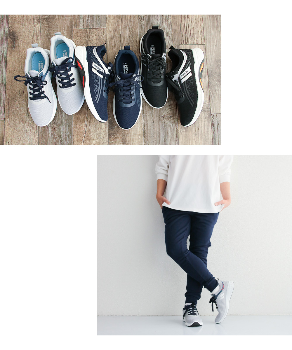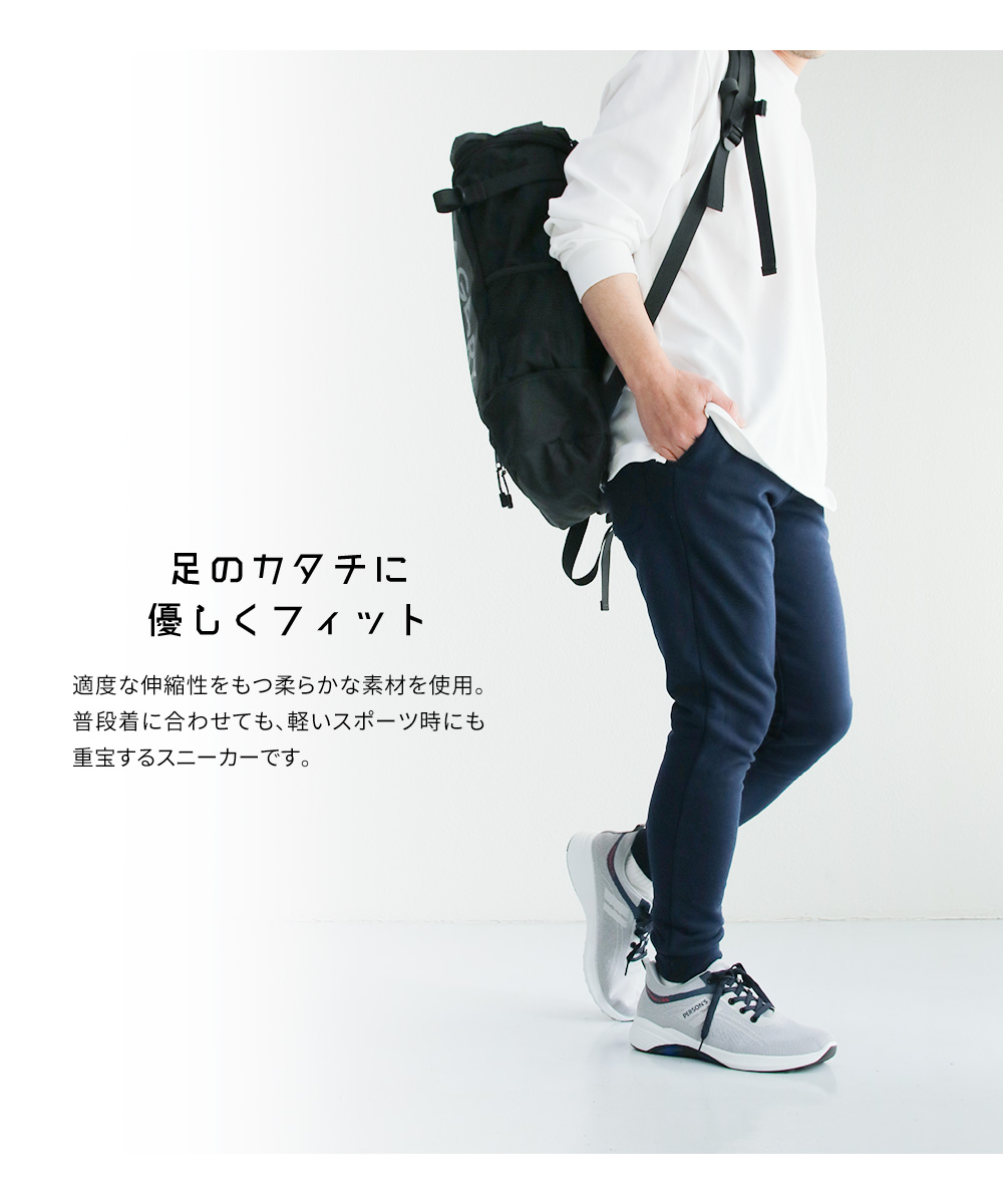 アッパーには通気性の良いメッシュ素材を使用。伸縮性抜群で履きやすい。