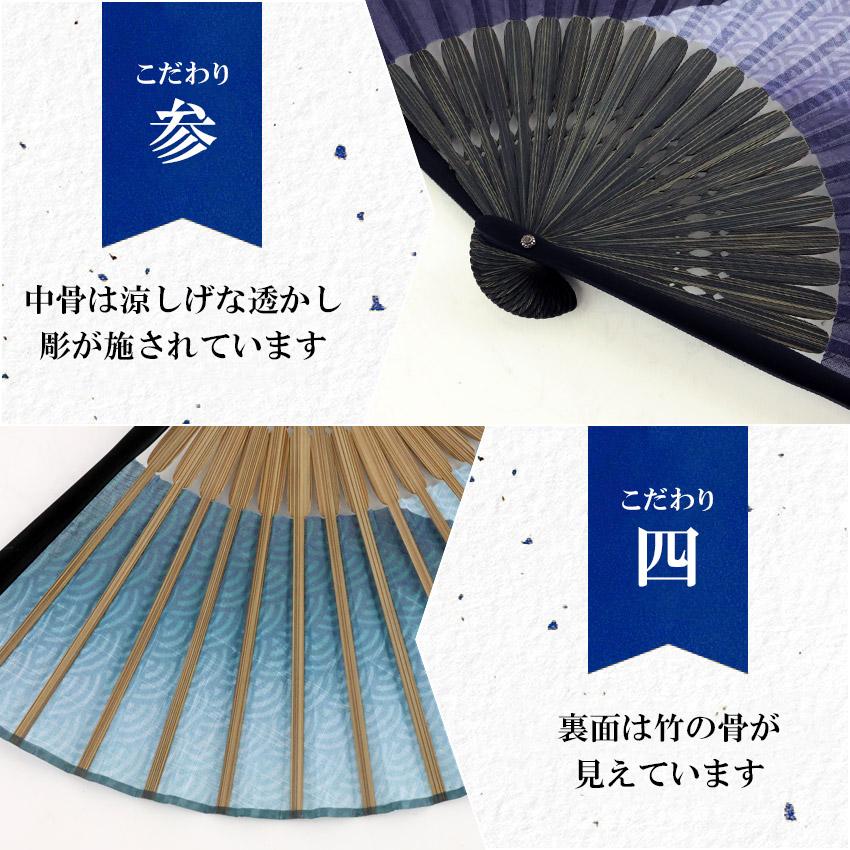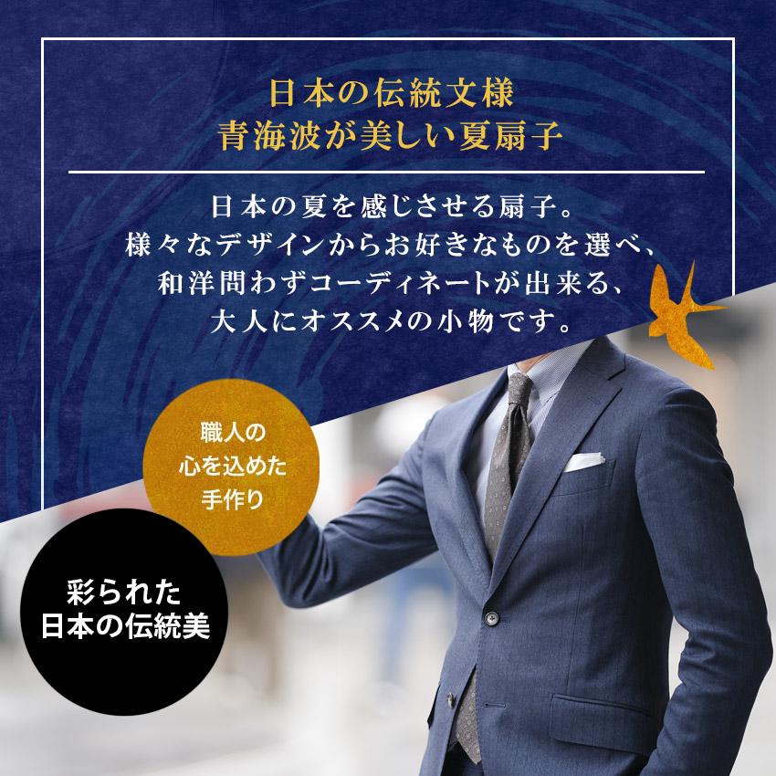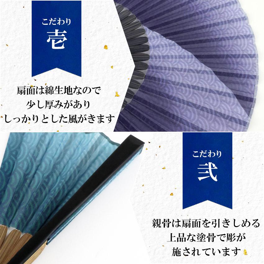 カラー:紺・青緑種別:男性用、紳士用 夏扇子、扇子袋セット扇面:綿100%扇骨:竹扇子袋:ポリエステル100%扇子を広げた時の大きさ(縦×横):約22×40cm箱(縦×横×高さ):紙箱 約10.5×26.5×2.5cm袋の長さ:約22cm