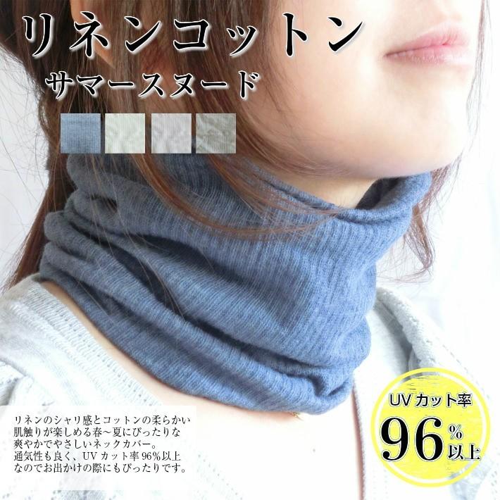 UVカットリネンコットンサマースヌードは通気性抜群のリネン混のUVカットのネックカバーです。