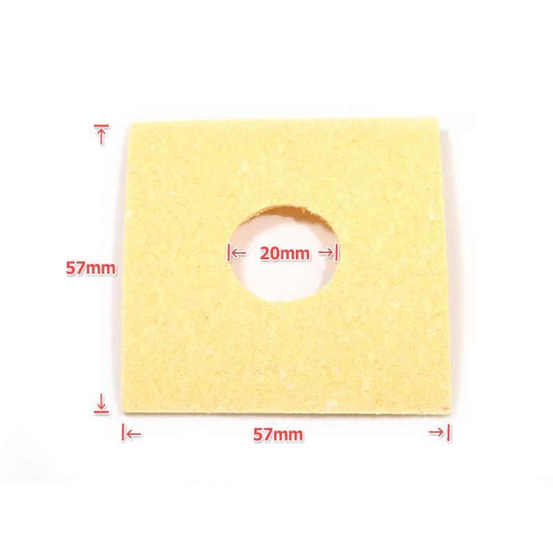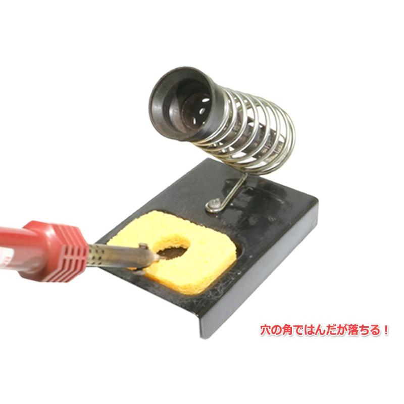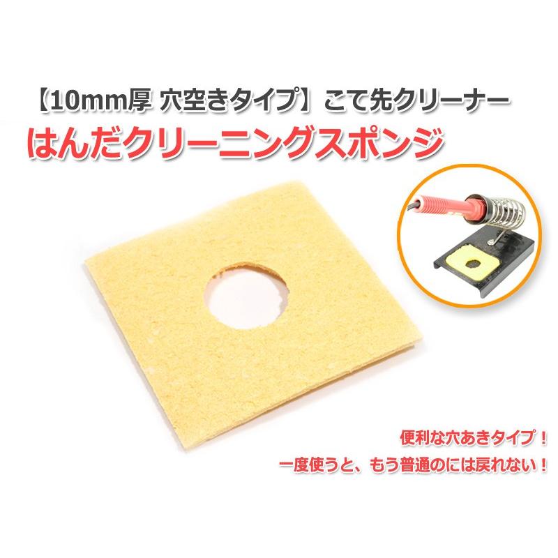はんだゴテ台用のスポンジクリーナーです。圧縮タイプのスポンジで、水を吸収すると規定の厚さに膨らみます。丸穴の角にこてをこすることで、はんだをしっかり簡単に落とせます。一度使うとやめられない、ハンダ作業の効率アップに!吸水前の圧縮状態のまま、ハサミ等でコテ台の窪み形状に合わせてお好みでカットしてお使いください。厚さ(吸水後):10mmサイズ:57mm×57mm 穴径:20mm (吸水前にカットして調整してください。)重量:約1.4g