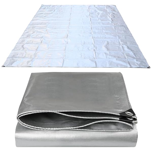 aleawol 2.8M×4.8M 防水シート 屋根 屋外 厚手 耐水 UVシート 防雨シート 防風 防塵 防雪 耐引裂き性耐久性 束ロープ付き ベランダ 雨よけ シート 貨物、屋根、花園、自動車などをカバーするのに適している(銀)