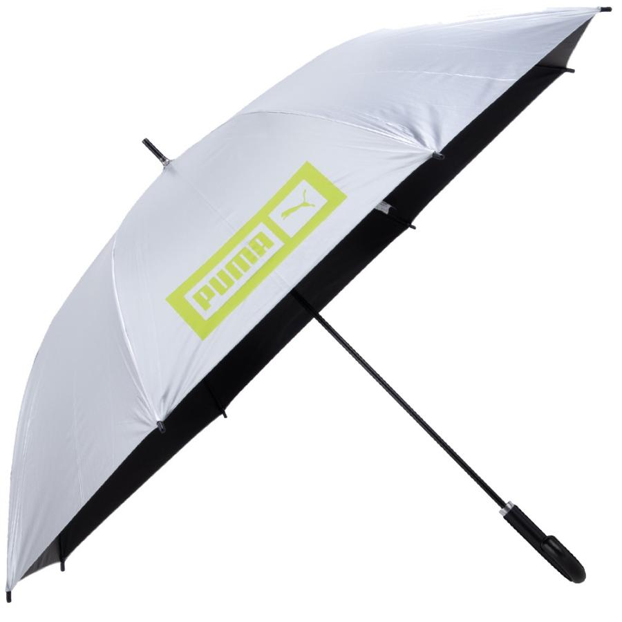 「プーマ」ブランドの表面シルバーコーティングの大判晴雨兼用ジャンプ傘です。紫外線カット率は99%以上です。レジャー、スポーツ観戦用、ゴルフ傘としてもご使用になれます。 親骨に折れにくいグラスファイバーを使用しております。