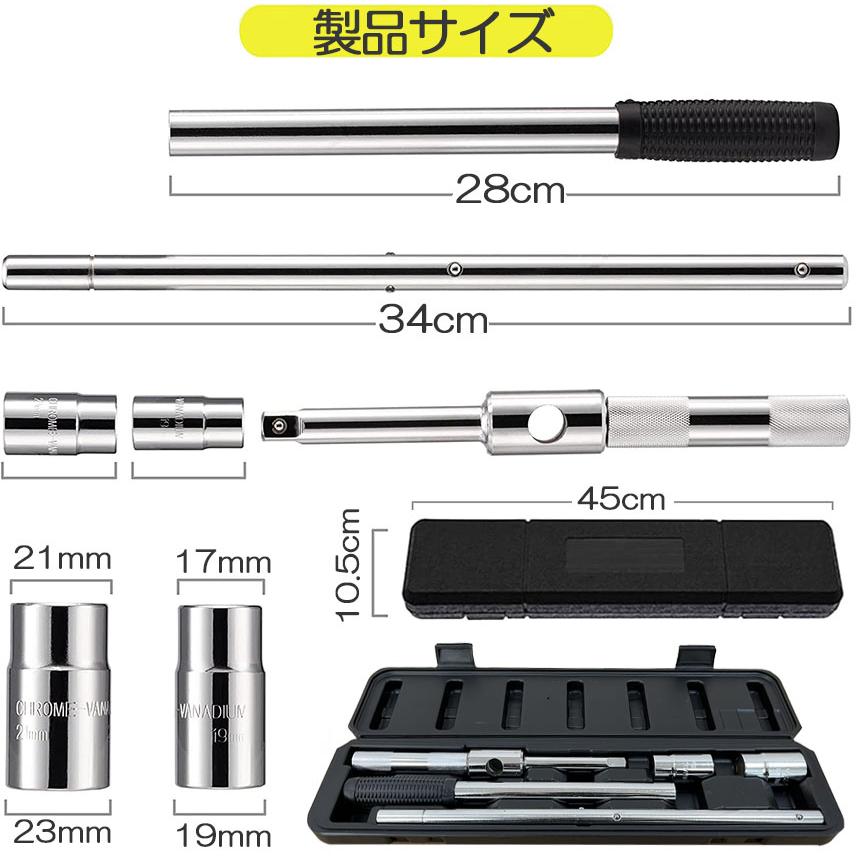 【パッケージ内容】:1 xレンチ、1 xレンチハンドル、1 x拡張ハンドル、1 x収納ケース、2 x双方向ソケット(1 x 17mm / 19mm、1 x 21mm / 23mm)