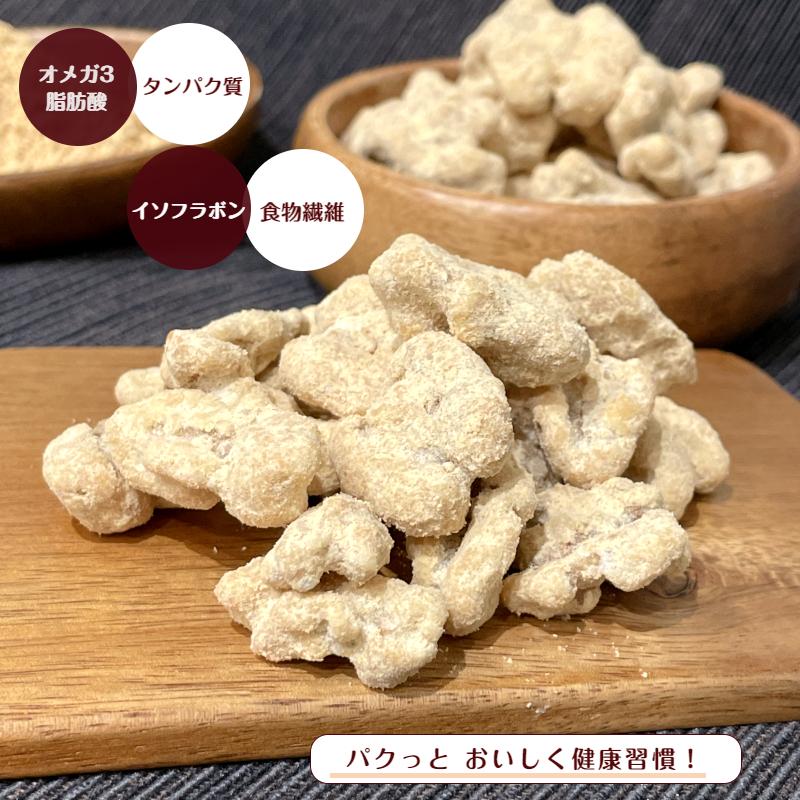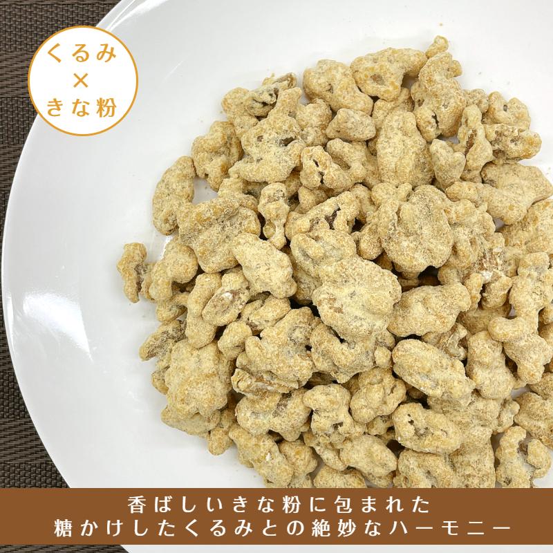 当店大人気商品!小腹がすいたときや甘いものが食べたくなった時に…♪くるみのキャラメリゼと香ばしいきな粉がマッチした緑茶やコーヒーのお供にぴったりなきなこクルミ。優しい甘みで手が止まらなくなる甘い美味しいお菓子です。ヨーグルトに入れるのもオススメです。チャック付き保存袋で保存しやすい♪