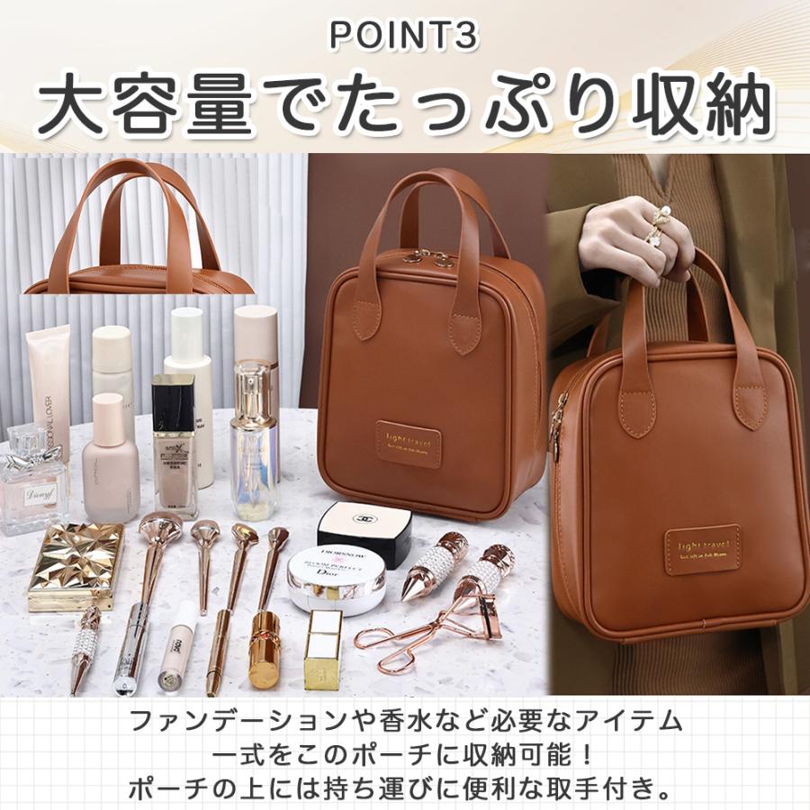 ファンデーションや香水など必要なアイテム一式をこのポーチに収納可能!