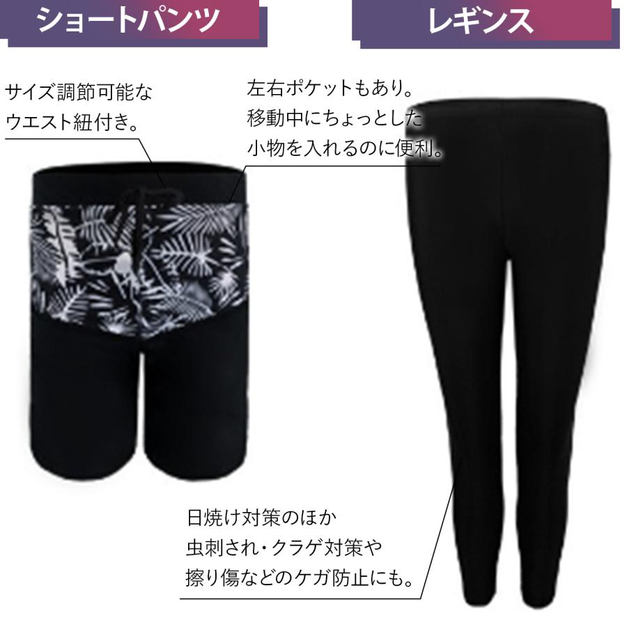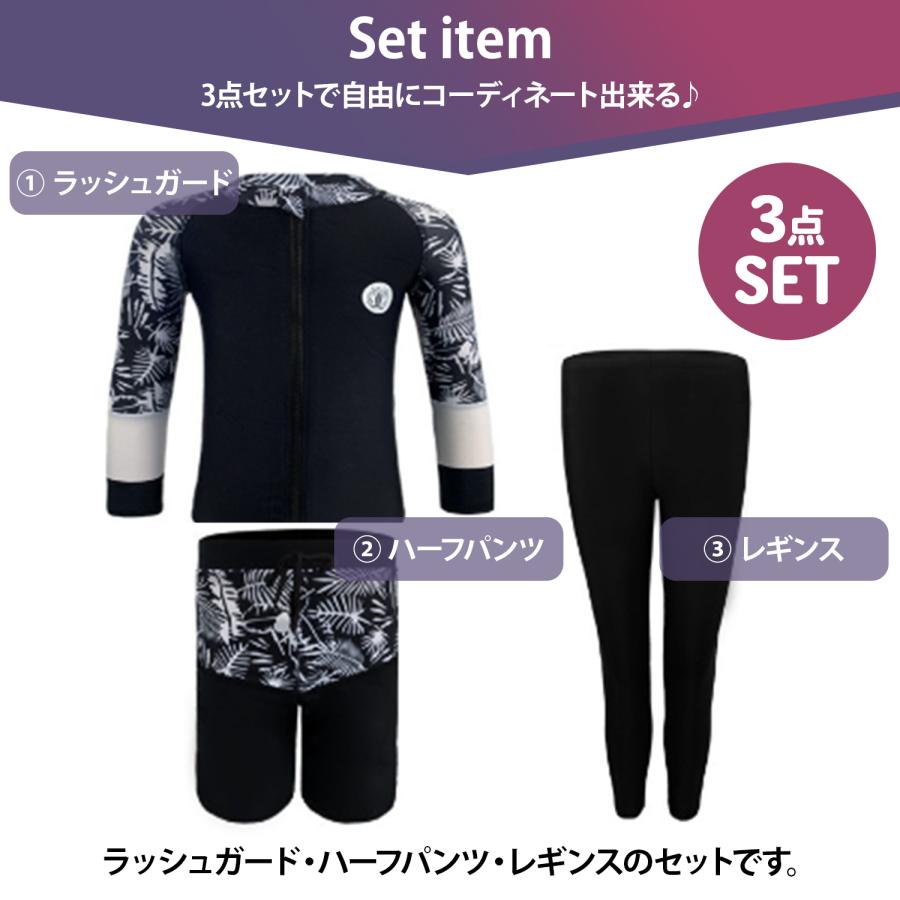 ラッシュガード・ハーフパンツ・レギンスの3点セット!シーンに合わせて自由に組み合わせ可能。