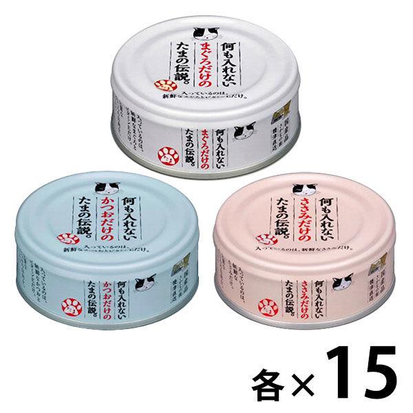 (お得なアソート)何も入れないささみだけの たまの伝説 キャットフード 国産 45缶(3種×各15缶)三洋食品