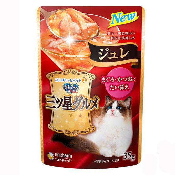 (セール)(お得なアソート)銀のスプーン 三ツ星グルメ ジュレ まぐろ かつおにたい添えなど 64袋(各16袋×4種)キャットフード ウェット パウチ
