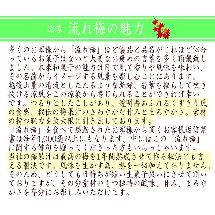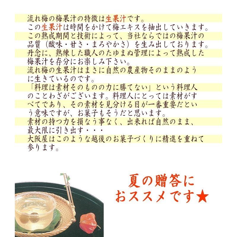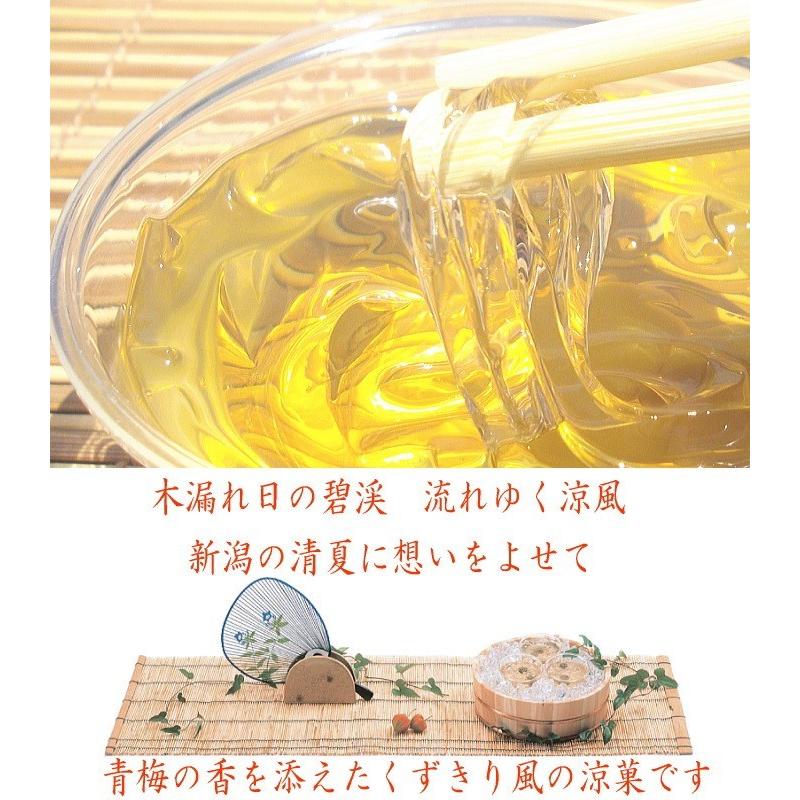 【夏季限定】青梅の香を添えたくずきり風の涼菓★新潟の夏の贈り物と言えばこれ!!万代太鼓に並び、新潟の老舗菓子店「大阪屋」の新潟を代表する夏の贈り物★よく冷やした後封を取りお箸にてお召し上がり下さい(*^_^*)このすっきりとした大人気の美味しさをお楽しみくださいヽ(^o^)丿◆内容量 :10個入◆消費期限:6日(要冷蔵)※発送の際には到着日を含めて3日になります。※メーカー直送の為、大阪屋の商品のみ同梱可能となります。