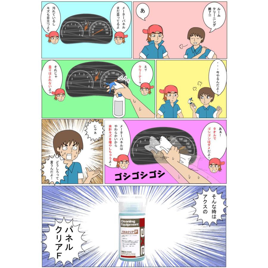 車内の目に付きやすい箇所のメーターパネル専用の洗浄剤です。一
