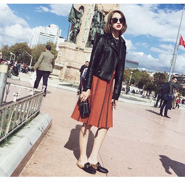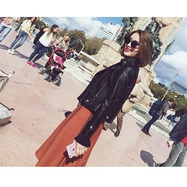 カッコよくキメたい時にぴったりな、シングルのライダースジャケット。かっこよくにも可愛くにもなれる、お役立ちアイテムです。フェミニンなアイテムと組み合わせれば甘辛ミックスが完成します。